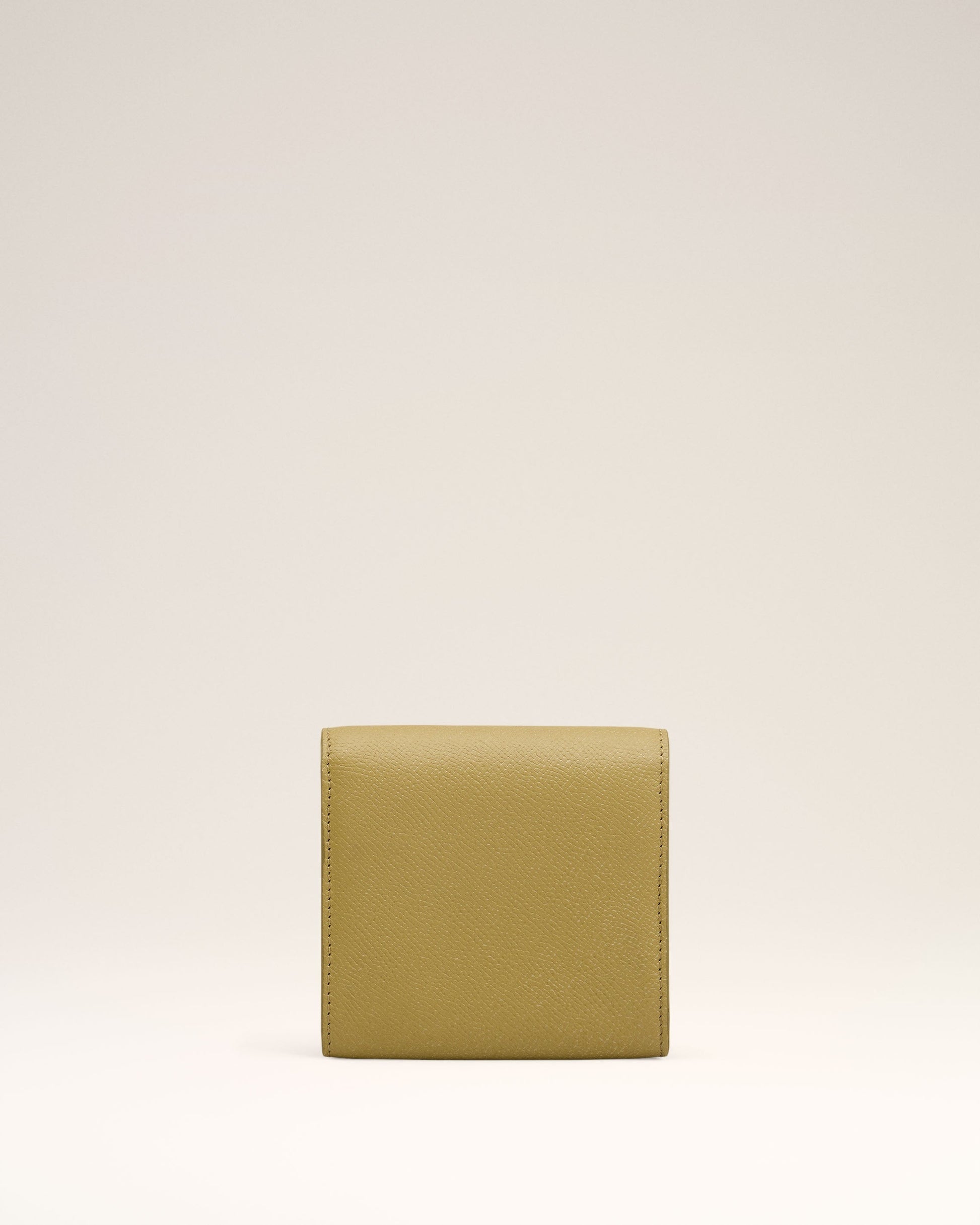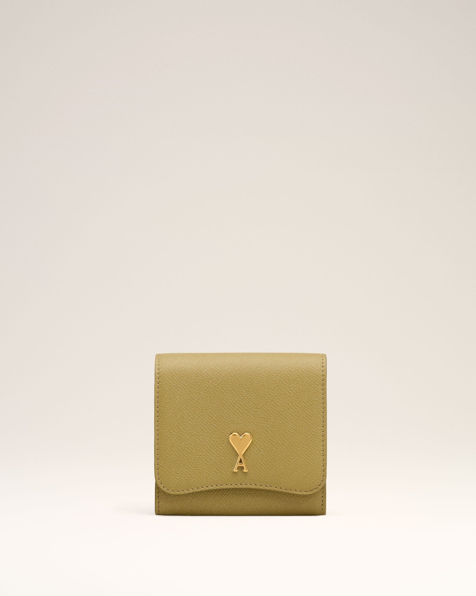 Paris Paris compact wallet in grained leather. Cotton canvas lining Ami de Coeur stud One central zipped coin pocket, six card compartments and one front compartment Snap button fastening Metal hardware in vibrated brass color Size: 11x10 cm Made in Morocco (with love) REF: USL203.AL0036.732