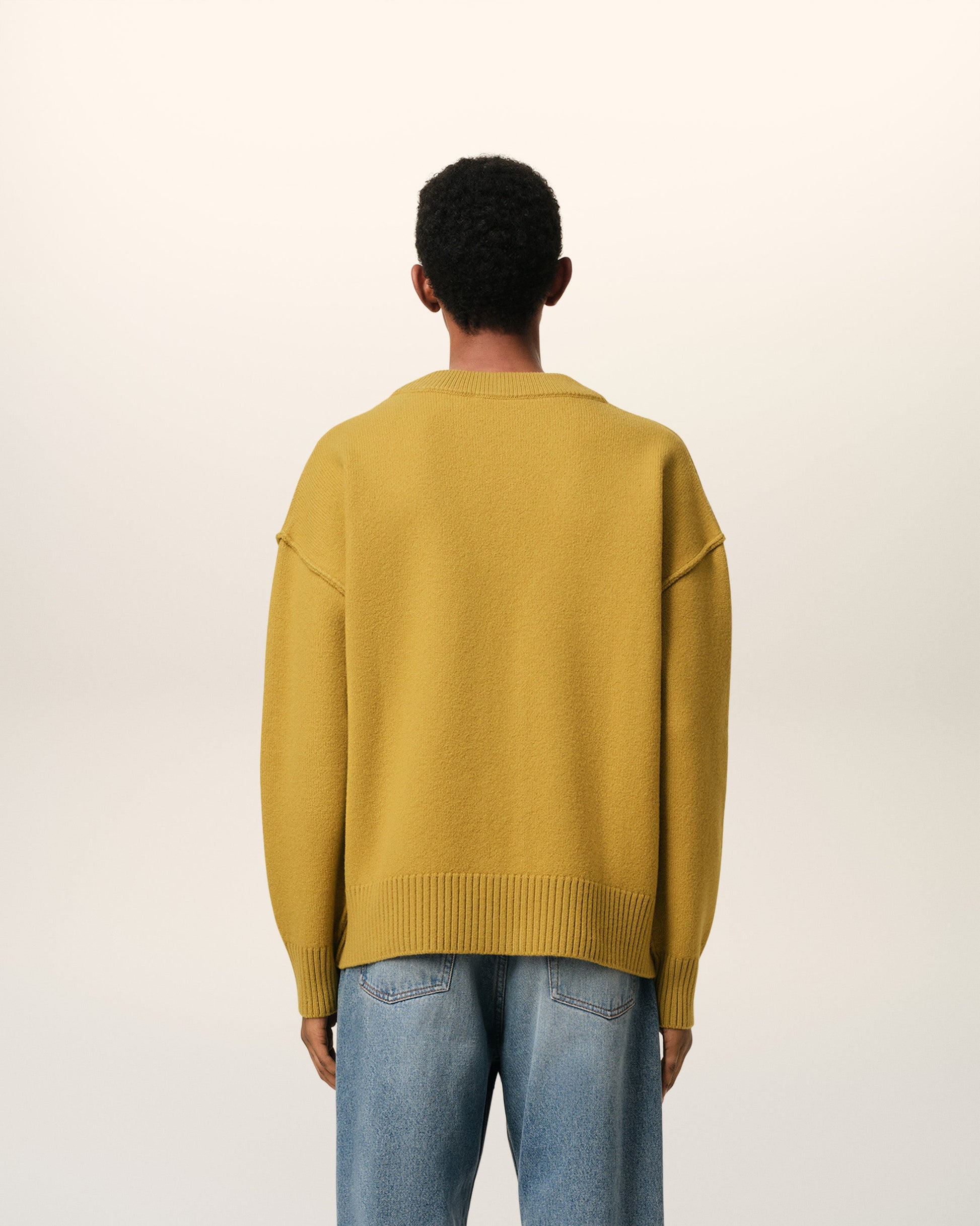 Cardigan in felted merino wool. Unisex product Jersey stitch Textured intarsia-knitted off-white Ami de Coeur on the chest Inside out seams 64 cm center back length (size M) 58 cm center back length (size XS) Made in Portugal (with love) REF: UKC090.KN0090.2821