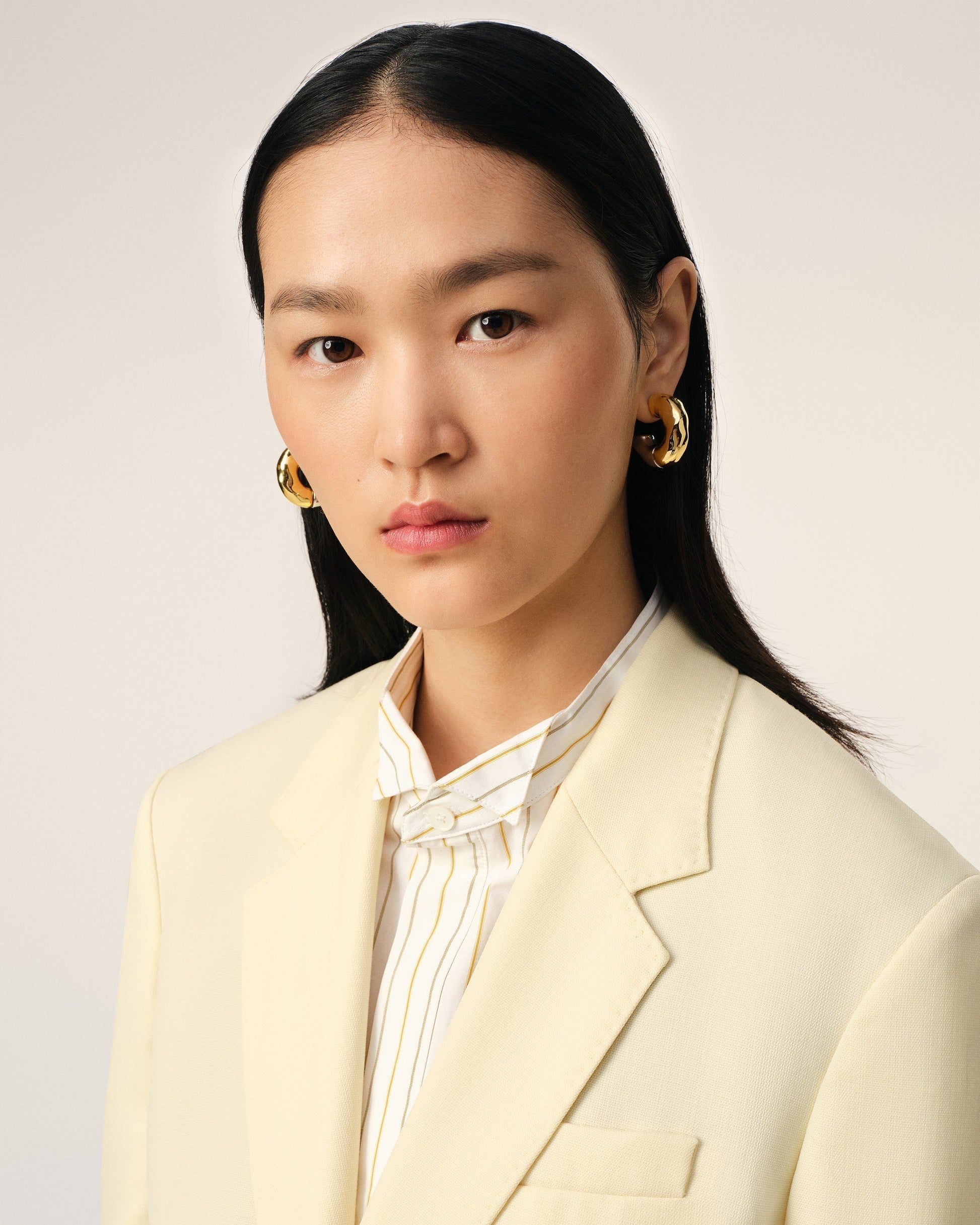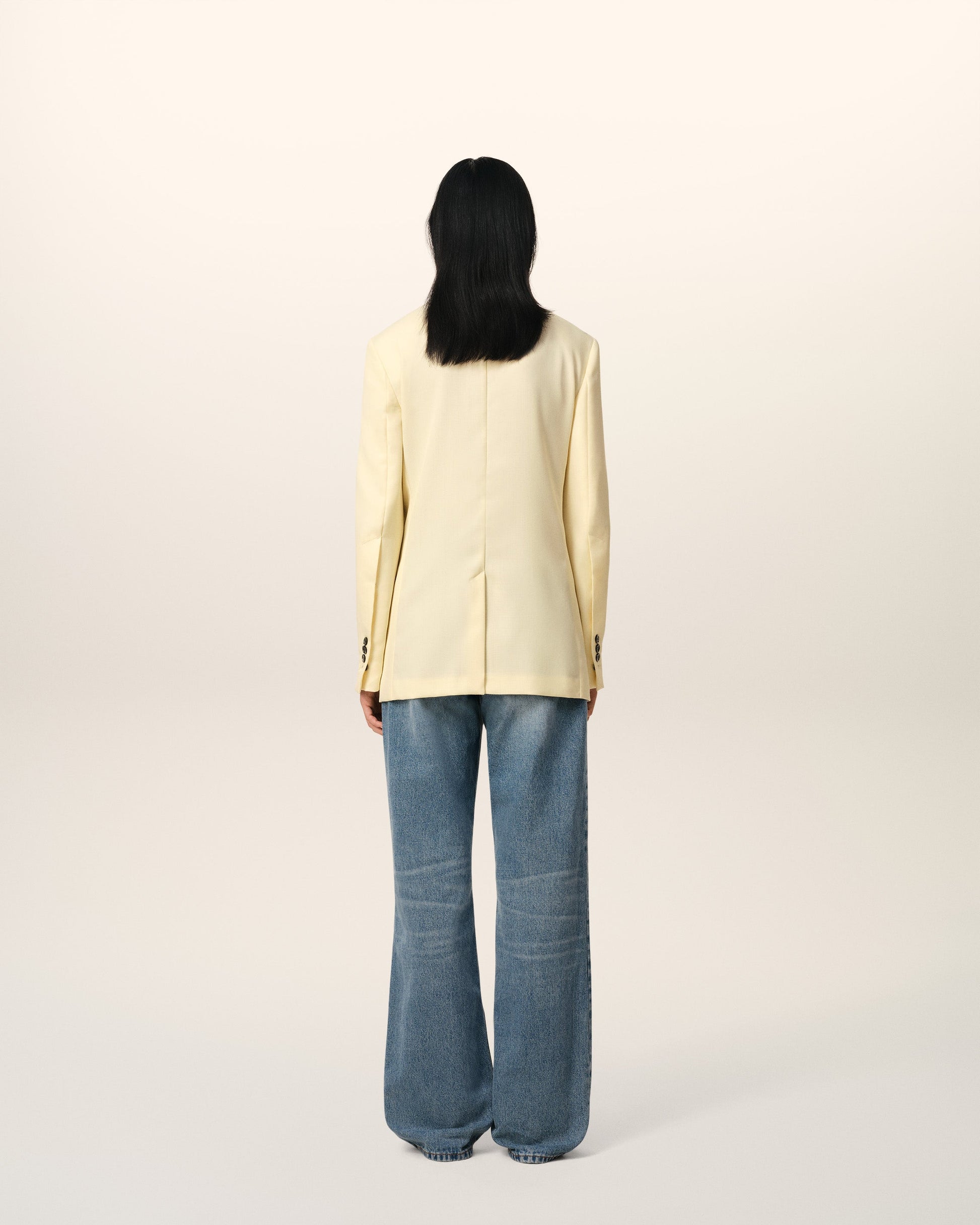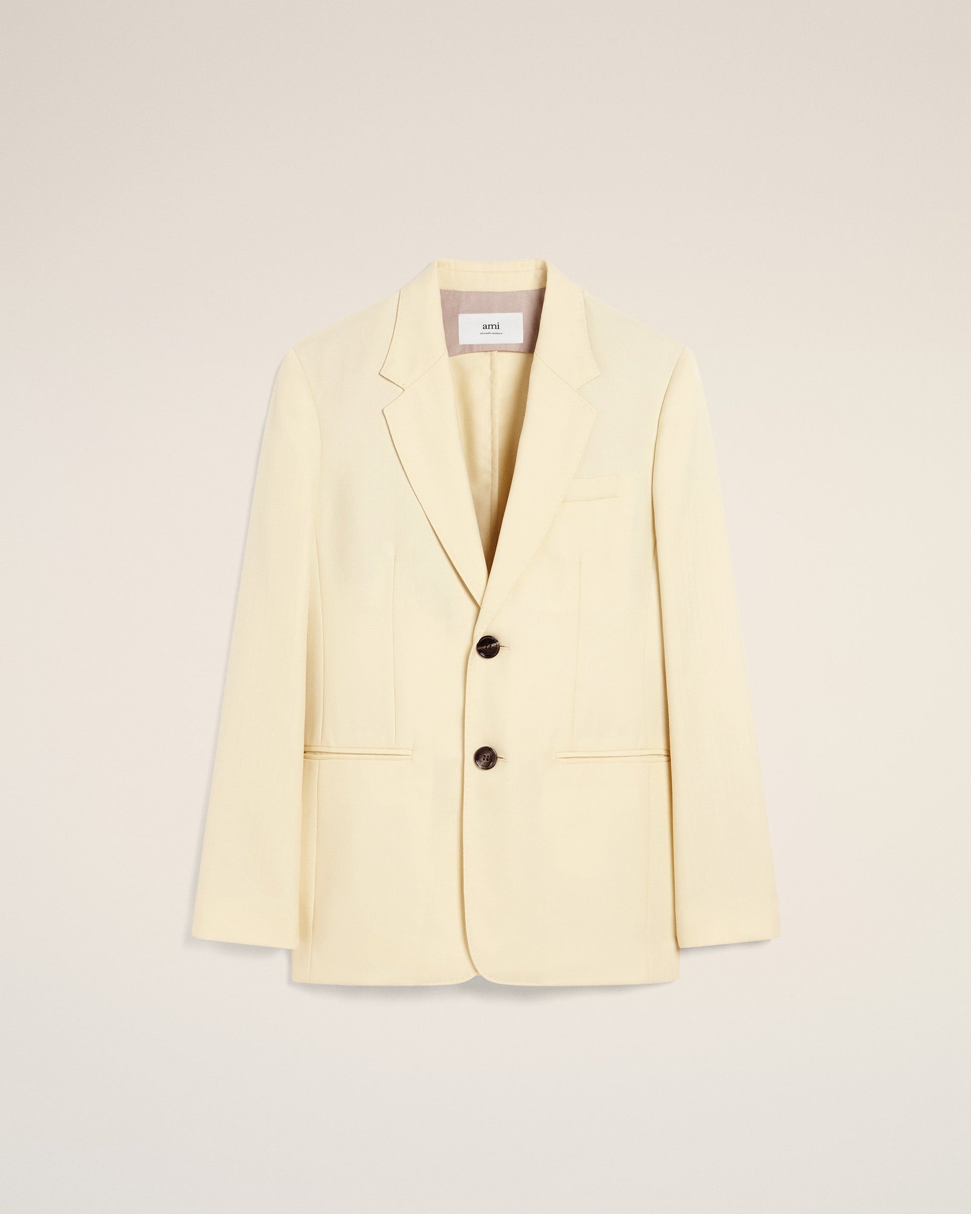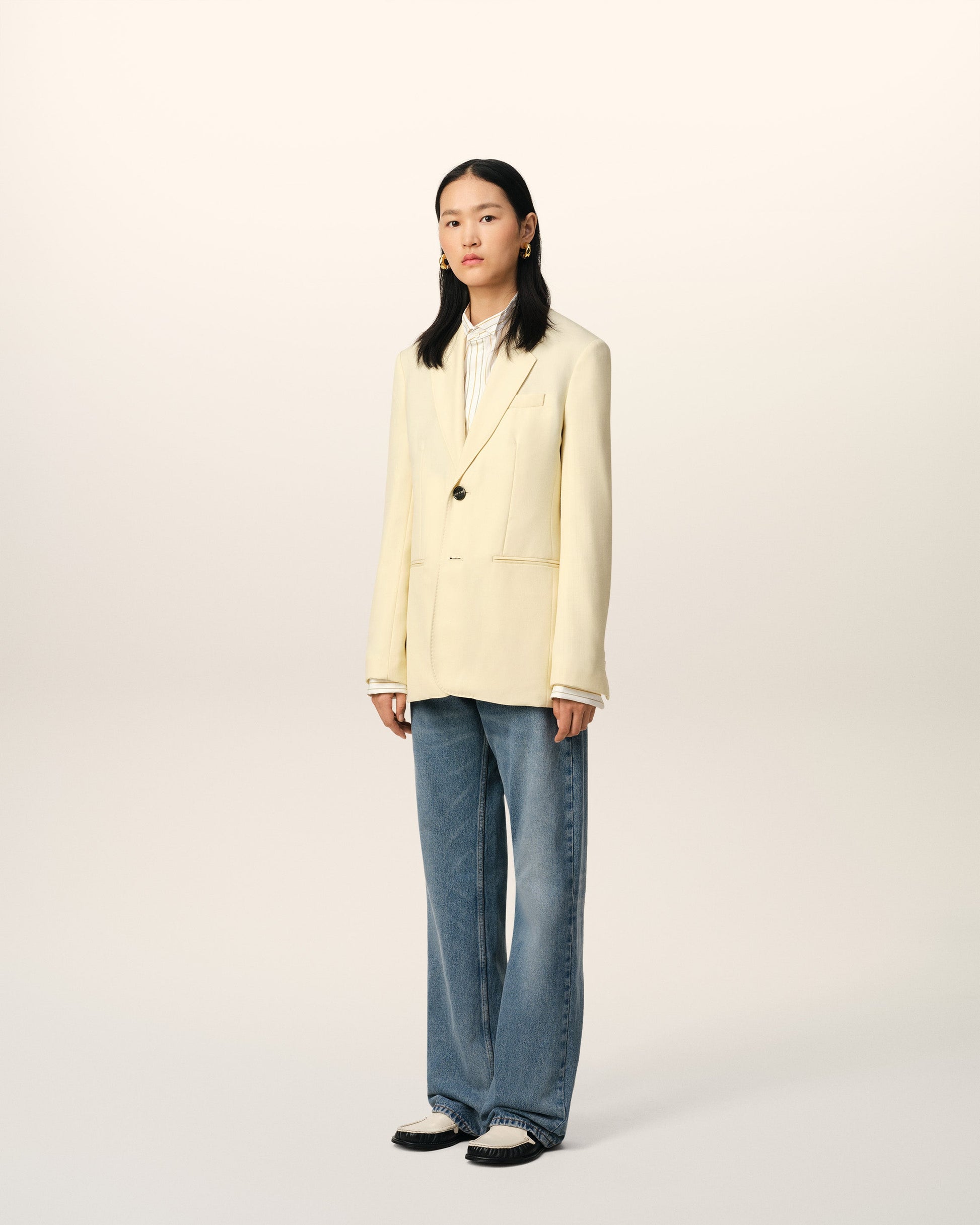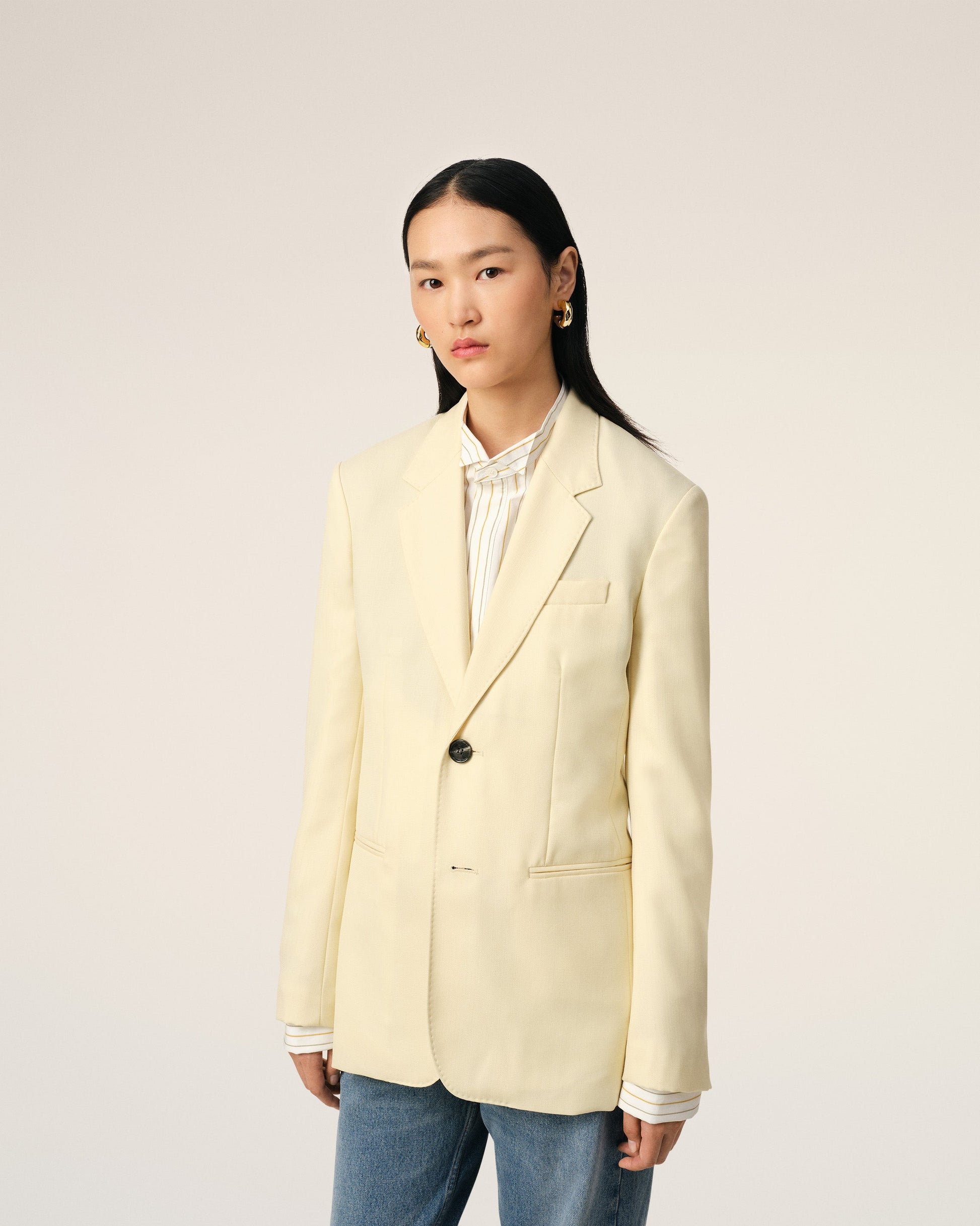 Semi-lined jacket in fluid wool canvas. Straight fit 75 cm center back length (size 36) Half lined Notch collar Two buttons single breasted Two double piped pockets One chest piped pocket Three inside pockets Buttoned bottom sleeves Centre back slit Horn buttons Made in Romania (with love) REF: FBV011.WV0068.726
