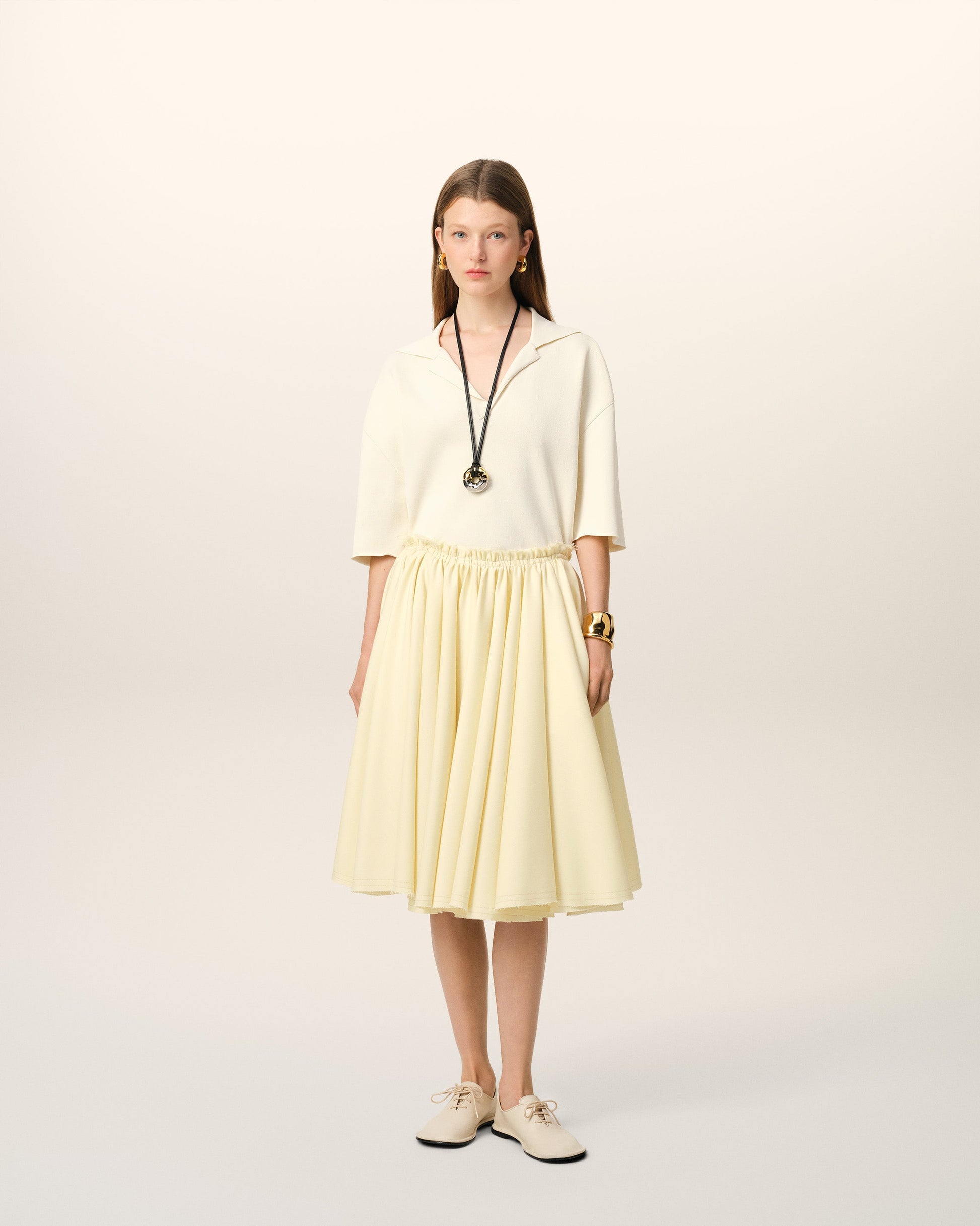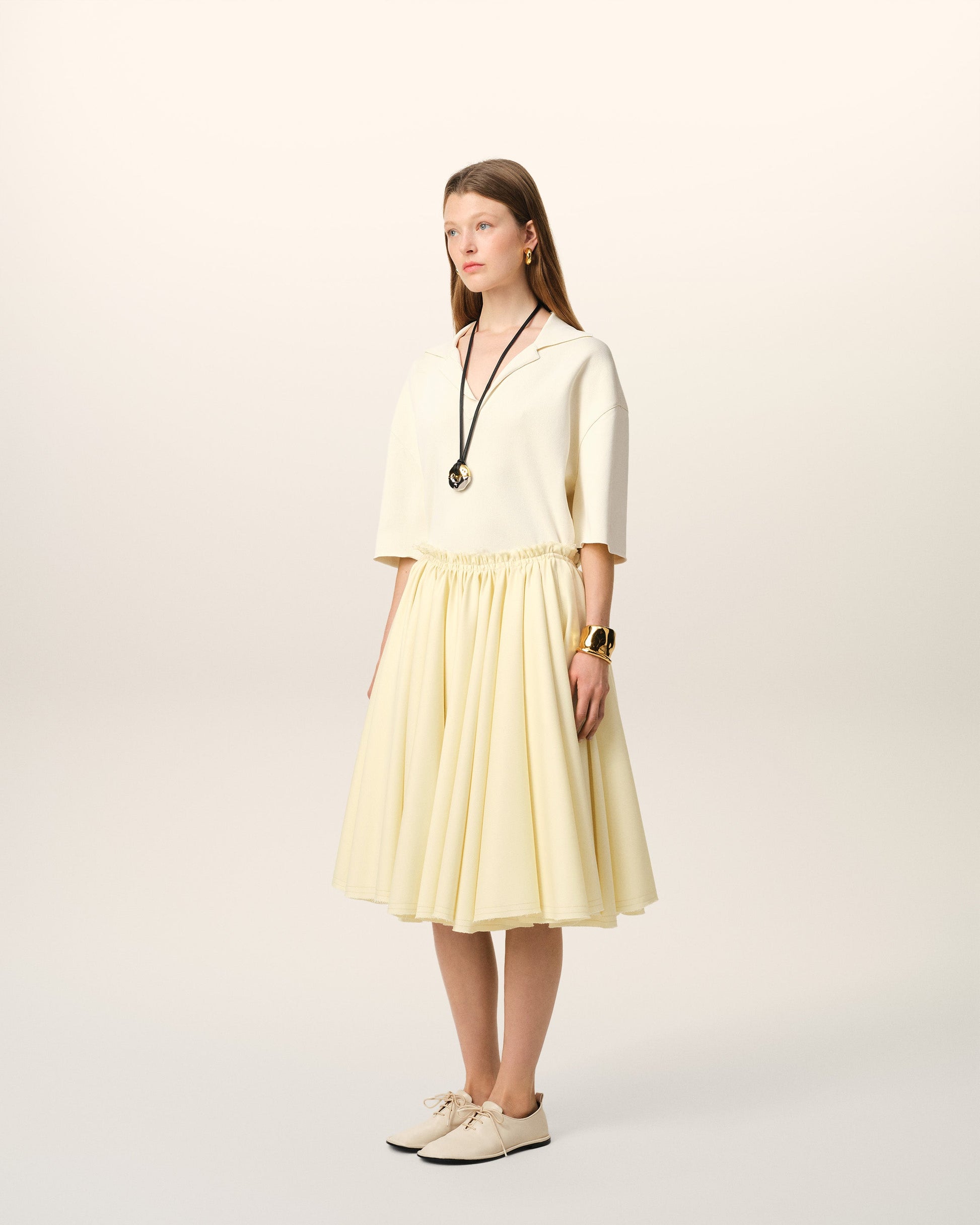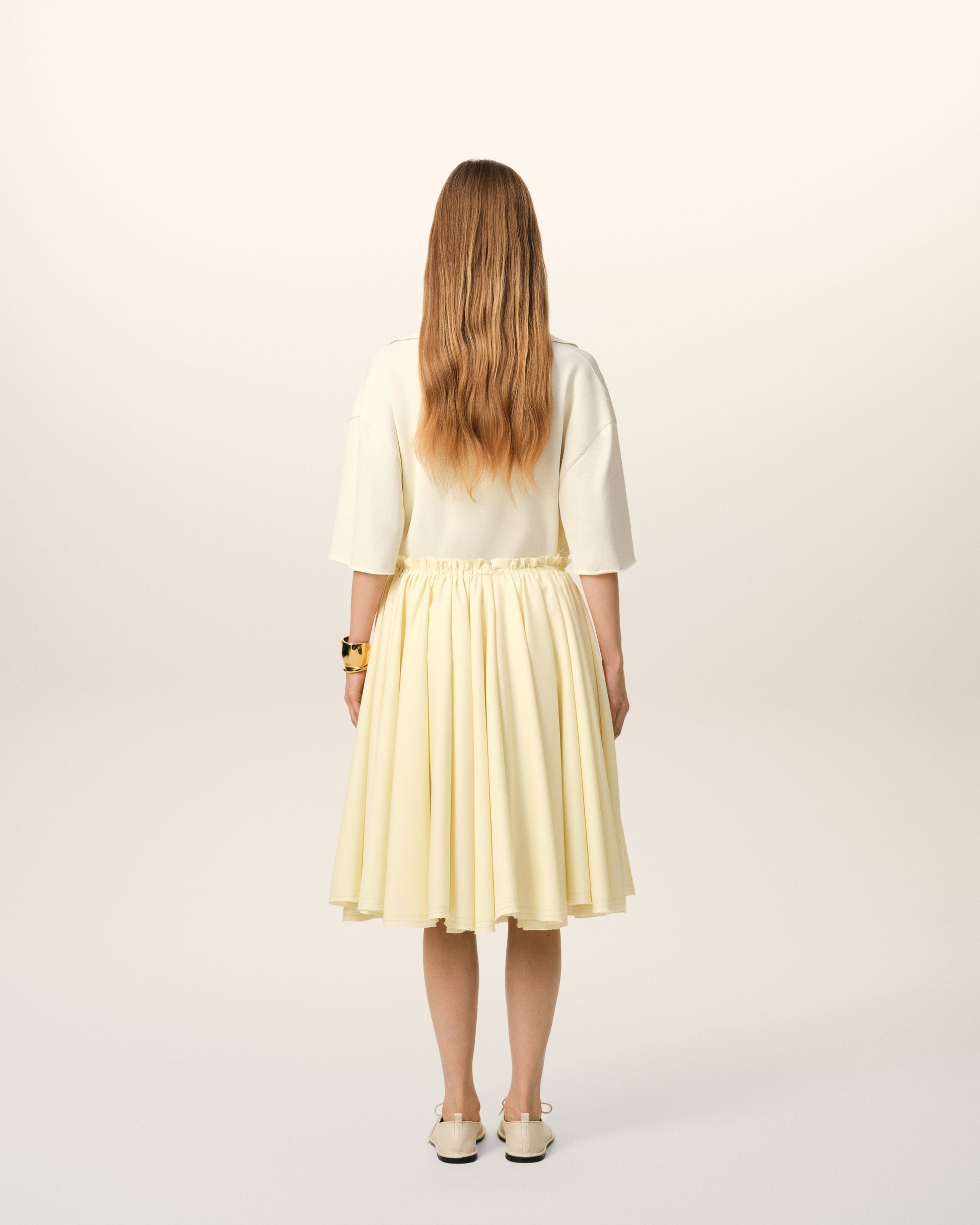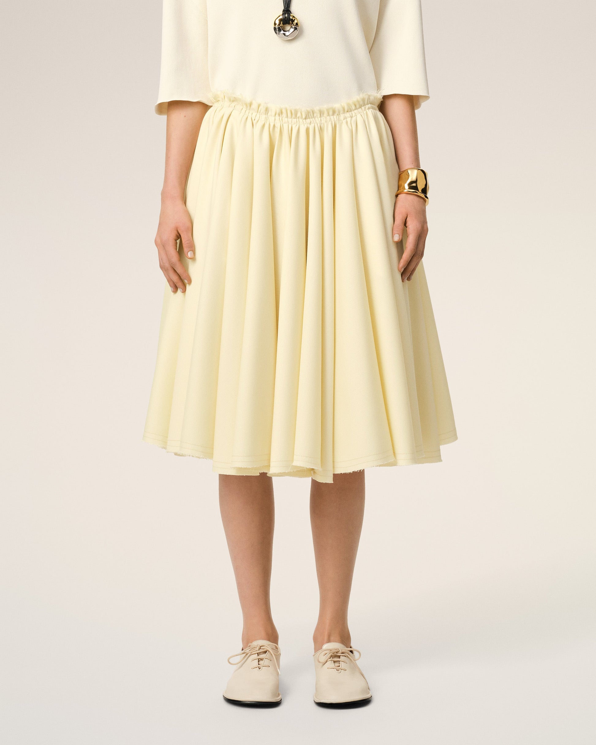 Yellow Wool Skirt With Godets
