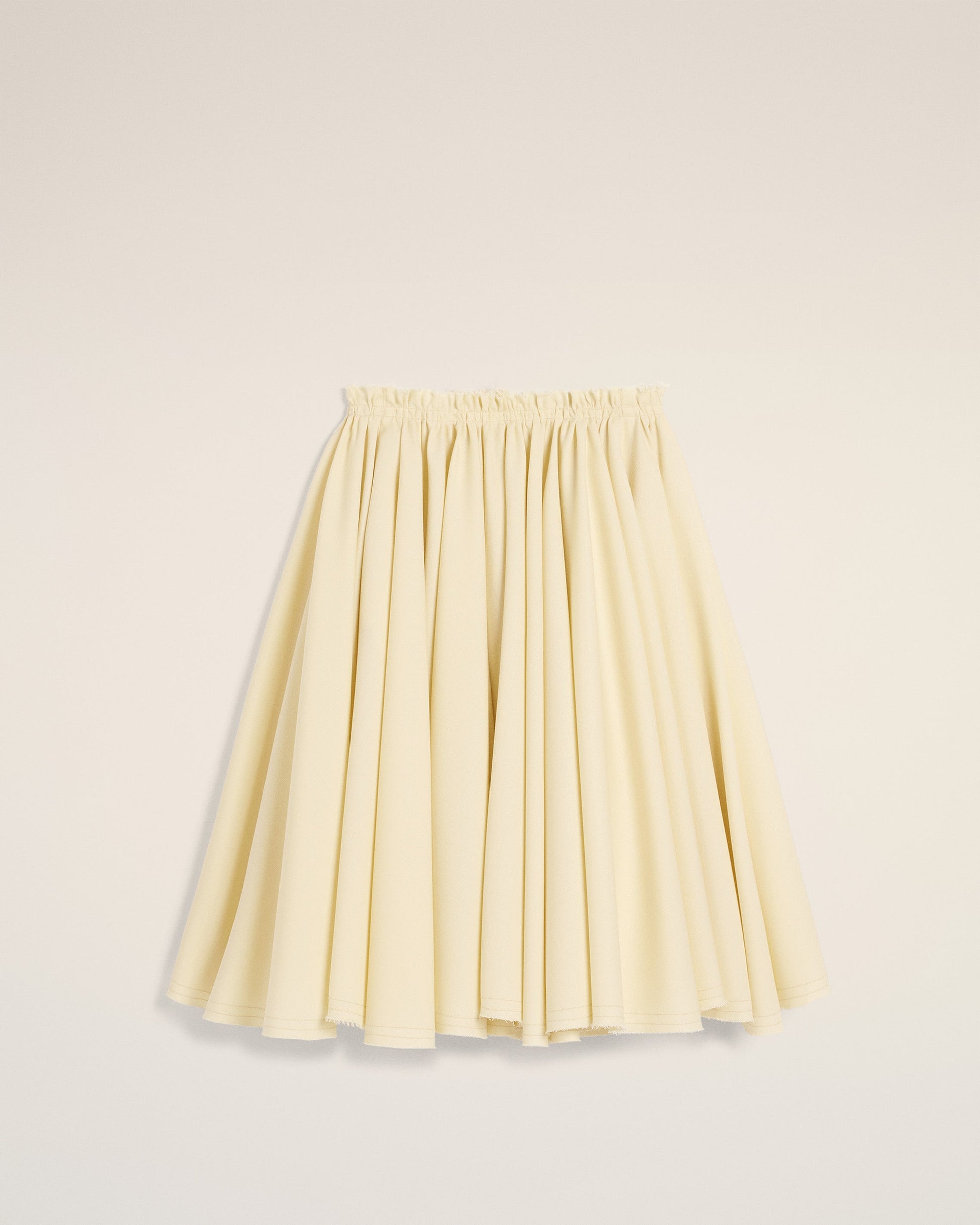 Midi skirt with godets in fluid wool canvas. Middle back length 63 cm (size 36) Invisible back zip Made in Madagascar (with love) REF: FSK227.WV0068.726